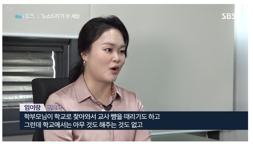 지난 7월 18일, 서울의 한 초등학교 1학년 담임교사가 학교 내에서 극단적인 선택을 했다. 문제 행동 학생의 생활지도와 학부모와의 관계에서 어려움을 겪었다는 의혹이 제기됐다, 이 안타까운 죽음을 계기로 참혹한 교권 추락의 현실이 공론화되었다. 전국의 5,000여 명 교사들은 대규모 집회를 열어 '교사의 생존권 보장'과 '교권 보호' 대책을 촉구했다. SBS <뉴스토리> 제작진은 교권 추락의 심각성이 불거지기 전인 지난 6월, 학교를 떠나는 교사들을 만나 참혹한 교권 침해의 심각성을 전했다. 방송 후 학교 현장의 실태를 들여다보고자 초등교사 출신의 임이랑 교육 전문 변호사를 다시 만나 그 내막을 들어봤다.