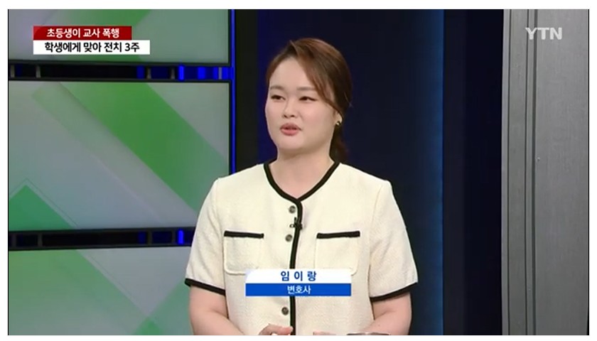 명확한 상세한 교육당국의 가이드라인을 요청하셨습니다. 제일 피해를 보는 사람은 그 누구도 아니라 바로 우리 아이들입니다. 같은 반에서 이런 폭행 상황을목격해야만 하는 아이들이 자라서 어떤 세상이 되겠습니까? 아이들이 행복한 세상을 위해서 부모님도 교사들도 그리고 같은 반 아이들도 모두 함께 중지를 모으는 계기가 됐으면 좋겠습니다. 오늘 말씀 여기까지 들을게요. 지금까지 임이랑 변호사였습니다. 잘 들었습니다.